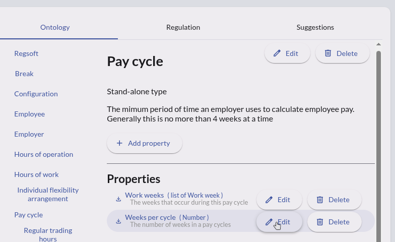 Our editor makes it simple to define the data that is required to prove compliance. In most cases, we simply create Types and Properties that directly match the text in the regulations.