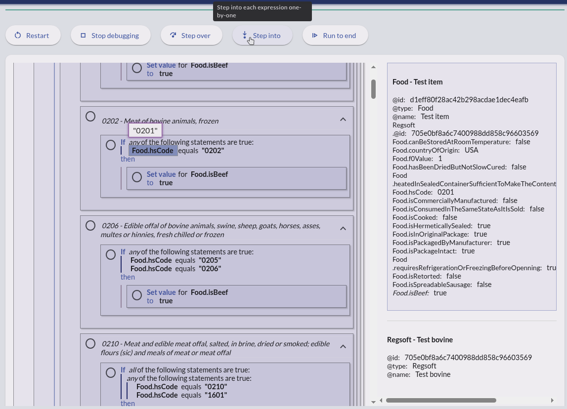 Not only do we test the rules, we also offer tools to do a fine-grained examination of their execution. Sometimes when combining several sets of regulation, the outcomes might not be exactly what you expect. Our rules also feature the ability to execute the tests line-by-line, showing exactly what it happening in real-time.